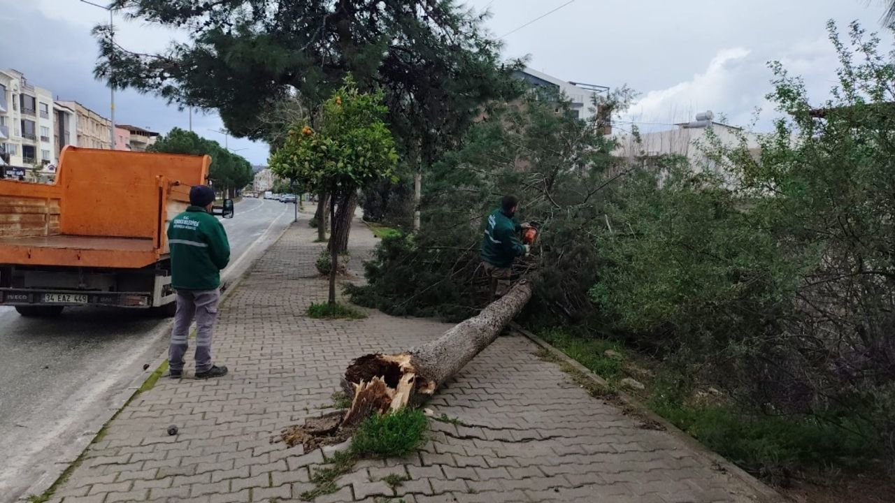 İlçe genelinde zaman zaman etkili olan kuvvetli fırtınada ise çok sayıda ağaç ve seyyar satıcıların stantları devrildi. Güzelçamlı Mahallesinin sahil kesiminde bulunan bazı evlerin çatıları uçtu. Kuşadası Belediyesi görevlileri iş makineleri ve saha personelleriyle olumsuzluklara müdahale etmek için ilçenin farklı noktalarında çalışmalarını sürdürüyor. (DHA)