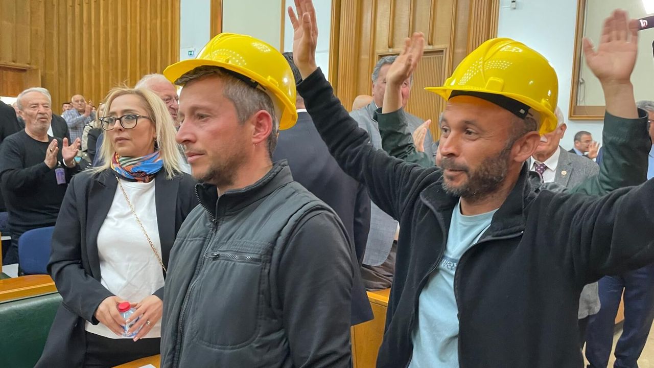Günlerdir Kurtuluş Parkında direnişteki bulunan maden işçileri CHP grubunda alkışlarla karşılandı.