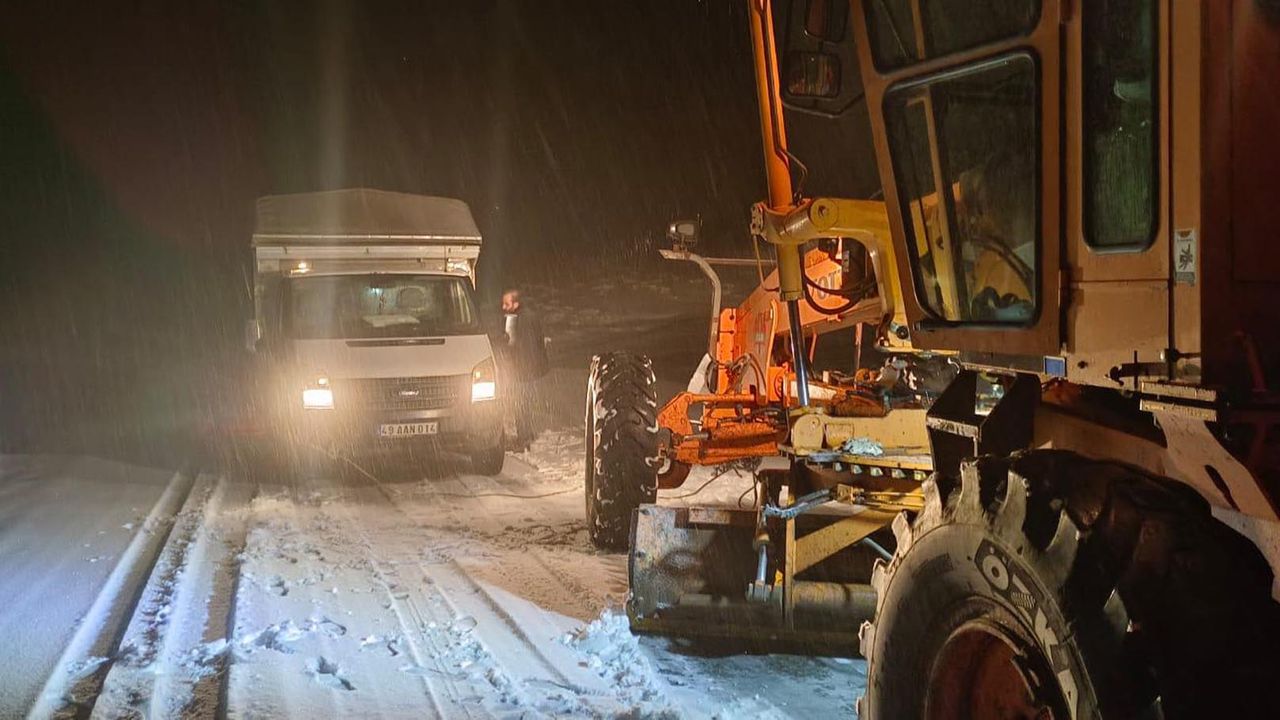 Muş’ta etkili olan kar yağışı ulaşımı olumsuz etkiledi. Muş’un Hasköy ilçesi ile Bitlis’in Mutki ilçesini birbirine bağlayan kara yolunda etkili olan kar ve tipi nedeniyle 5 araçta bulunan 13 kişi mahsur kaldı. Kaymakam Çeşmesi mevkiinde mahsur kalanları kurtarmak için Karayolları 113’üncü Şube Şefliği ekipleri, iş makineleriyle bölgeye sevk edildi. Ekiplerin yolda biriken karı temizlemesiyle mahsur kalan 5 araç ve içerisindeki 13 kişi kurtarılarak güvenli bölgeye ulaştırıldı.