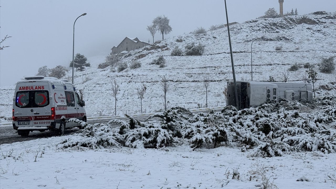 Olay, Kayaşehir yolu üzerinde meydana geldi. Abdullah Ağmanalmaz yönetimindeki 50 EC 110 plakalı işçi servisi minibüsü, kar yağışının ardından kayganlaşan yolda refüje çarparak devrildi. Kazada sürücü ile minibüste bulunan bims fabrikası çalışanı 13 işçi yaralandı.