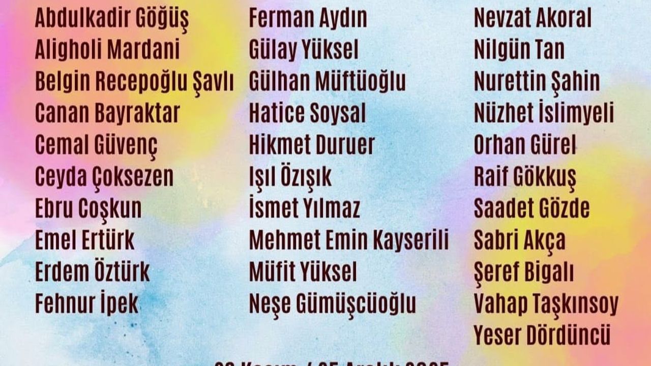 Etkinlikte Abdulkadir Göğüş, Aligholi Mardani, Belgin Recepoğlu Şavlı, Canan Bayraktar, Cemal Güvenç, Ceyda Çoksezen, Ebru Coşkun, Emel Ertürk, Erdem Öztürk, Fehnur İpek, Ferman Aydın, Gülay Yüksel, Gülhan Müftüoğlu, Hatice Soysal, Hikmet Duruer, Işıl Özşik, İsmet Yılmaz, Mehmet Emin Kayserili, Müfit Yüksel, Neşe Gümüşcüoğlu, Nevzat Akoral, Nilgün Tan, Nurettin Şahin, Nüzhet İslimyeli, Orhan Gürel, Raif Gökkuş, Saadet Gözde, Sabri Akça, Şeref Bigalı, Vahap Taşkınsoy ve Yeser Dördüncü gibi değerli isimler eserleriyle yer alacak.