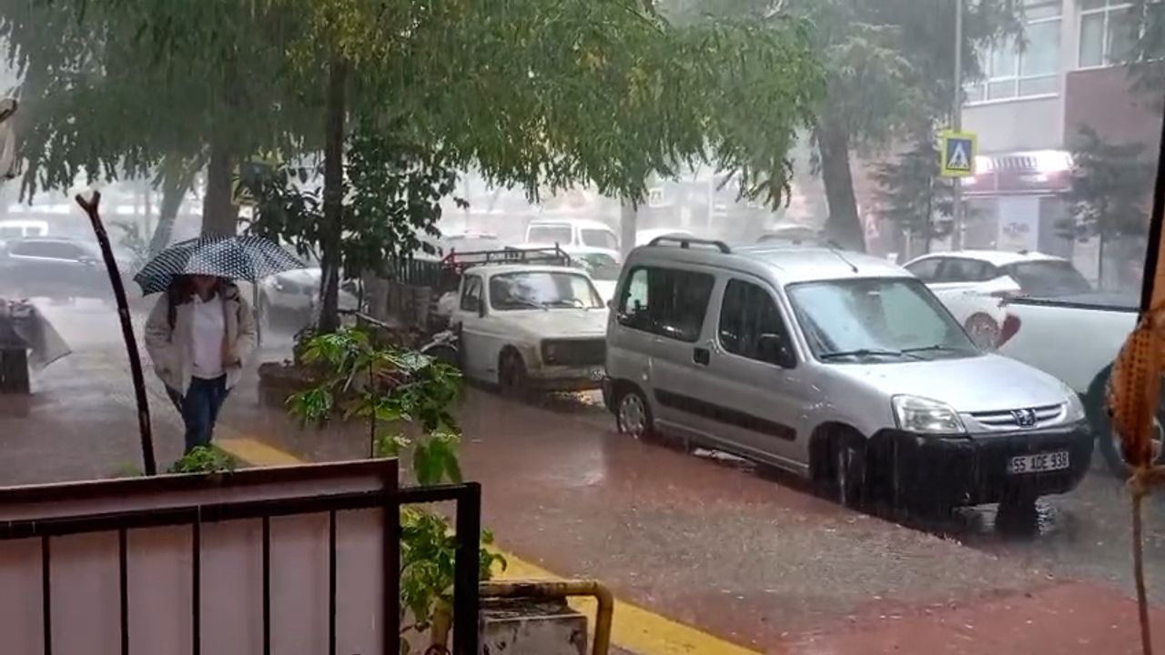 Samsun'da, Meteoroloji’nin uyarıları sonrası, sağanak etkisini gösterdi. Aniden bastıran yağış, hayatı olumsuz etkiledi. Yaklaşık 5 dakika süren sağanak, cadde ve sokakları göle çevirdi. Yağmur sonrası ev ve iş yerlerine gitmek isteyenler ile araç sürücüleri zor anlar yaşadı. (DHA)