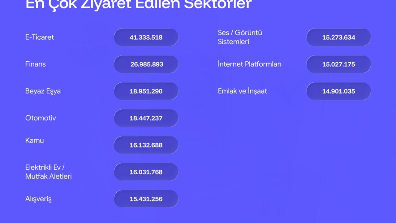 Market alışveriş siteleri kategorisinde yüzde 45'lik düşüş yaşandı. Yemek siteleri kategorisinde yüzde 13'lük artış gerçekleşti. Bireysel emeklilik sisteminde 2025 yılında yüzde 45'lik düşüş oldu.