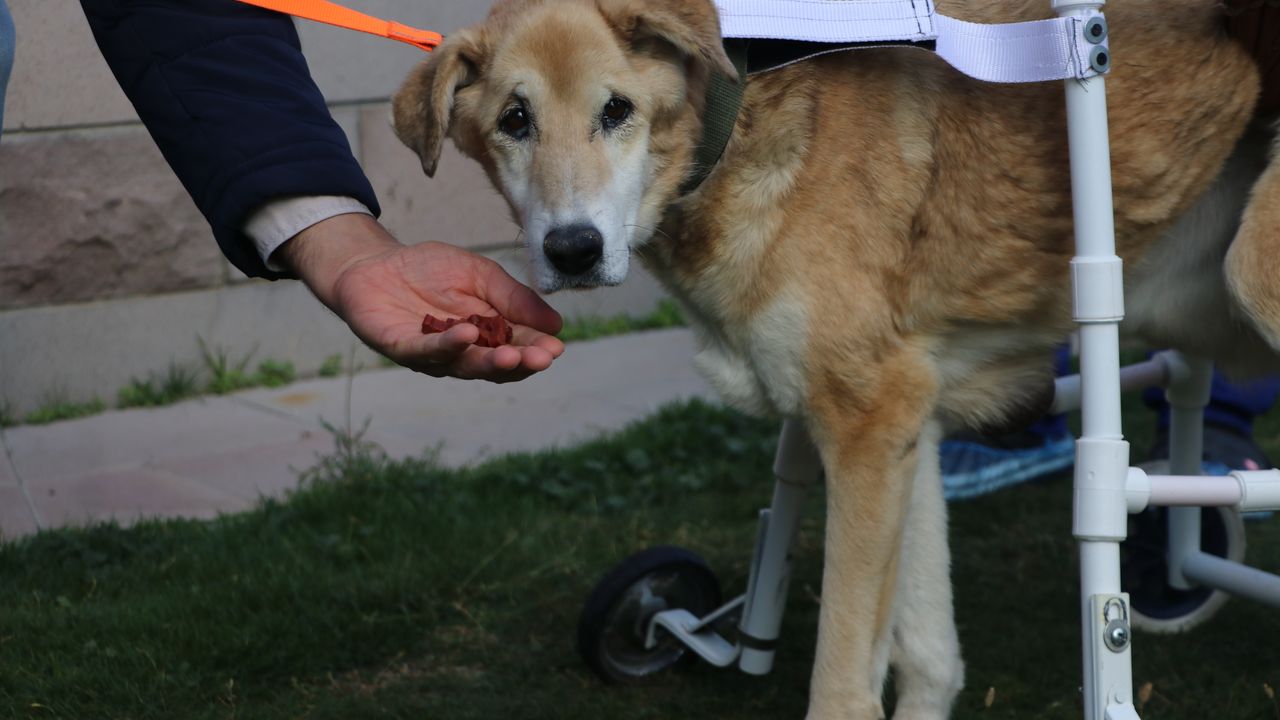 Çankaya'daki İlkbahar Mahallesi’nde bulunan Göksu Sitesi’nin bahçesinde 16 yıldır yaşayan sokak köpeği Fıstık, yaşlılığa ve kansere bağlı olarak felç geçirdi. Tedavi sürecinde 2 ameliyat geçiren Fıstık, buna rağmen arka patilerini kullanamaz hale geldi. Bunun üzerine site görevlisi Şahin Sungur, sosyal medyada gördüğü bir videodan ilham alarak, su boruları ve çocuk bisiklet tekerleklerinden yürüteç yaptı. Sungur, yürüteç ile yeniden adım atmasını sağladığı Fıstık'ı her gün site içinde gezdiriyor.