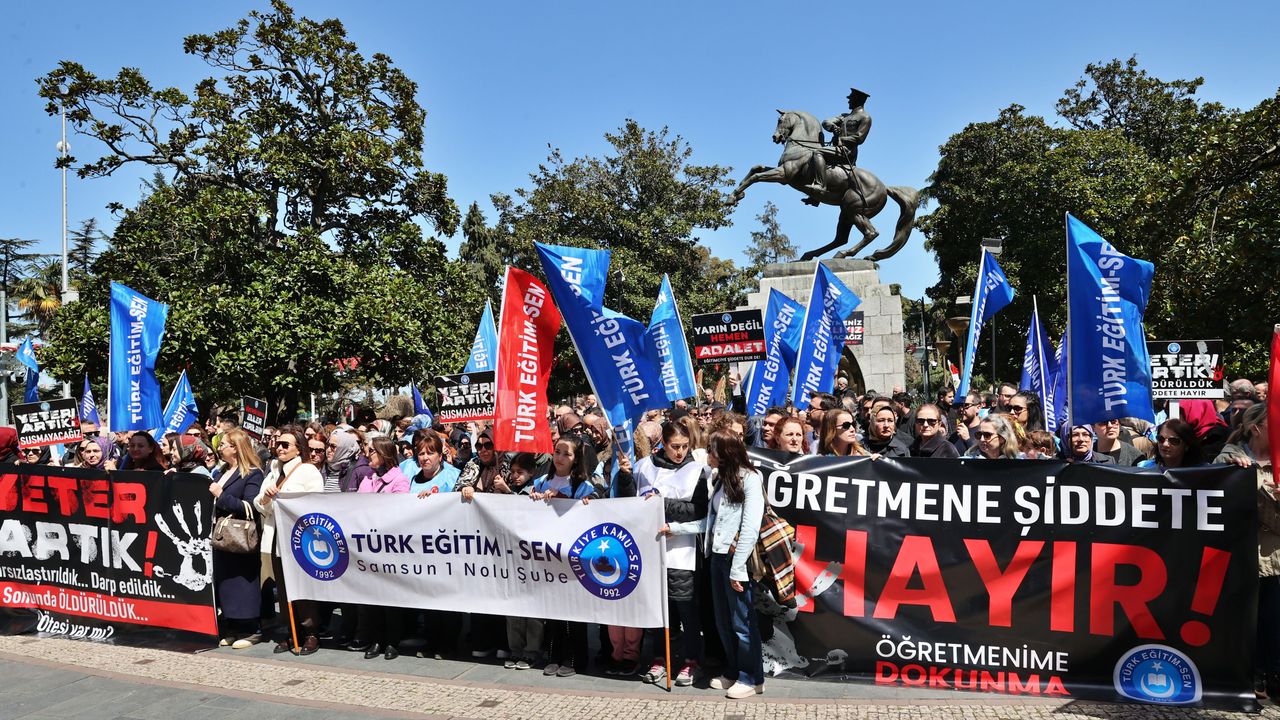 Samsun’da Onur Anıtı önünde toplanan sendika temsilcileri adına konuşan Güngör Bağ, eğitimde şiddete karşı toplumun tüm kesimlerinin birlikte hareket etmesi gerektiğini vurguladı.