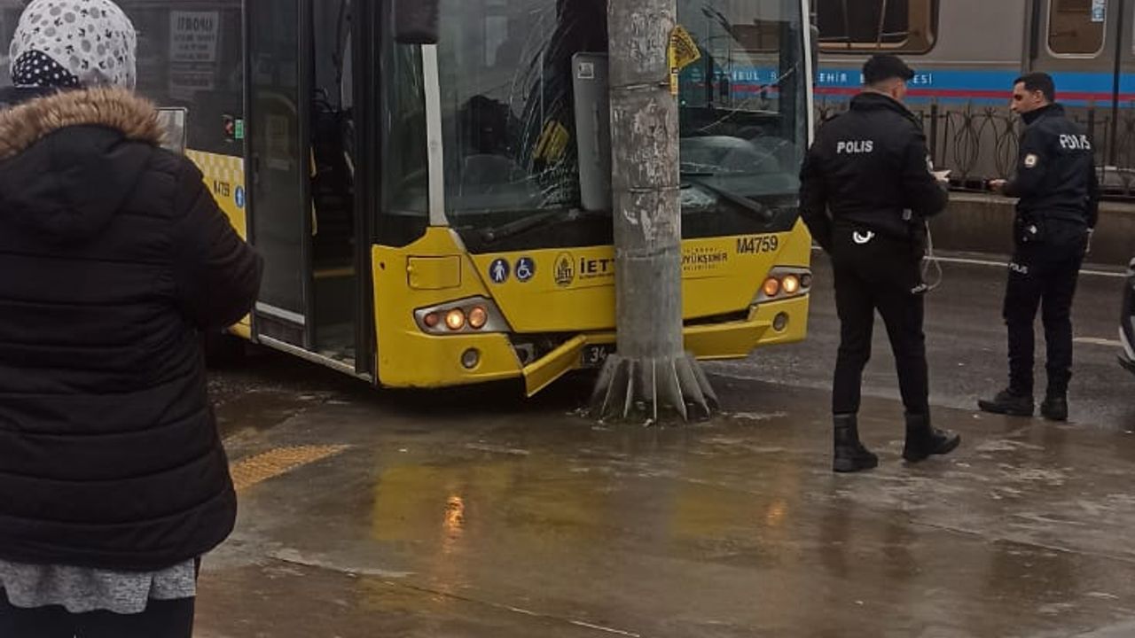 Sultangazi'de İETT otobüsü kayarak direğe çarptı