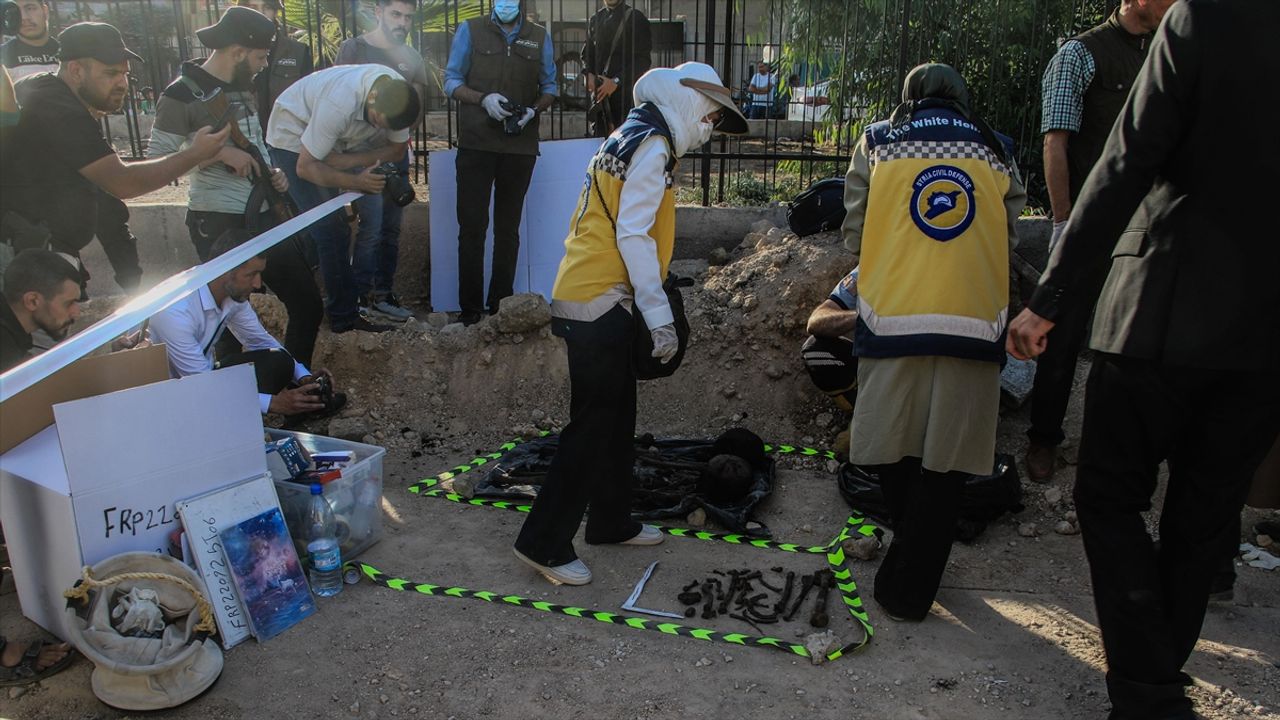 Şam kırsalındaki Duma'nın doğusunda Tel alsawan köyünde yürütülen kazı çalışmalarında kadın ve çocuklara ait ceset kalıntıları bulundu.
