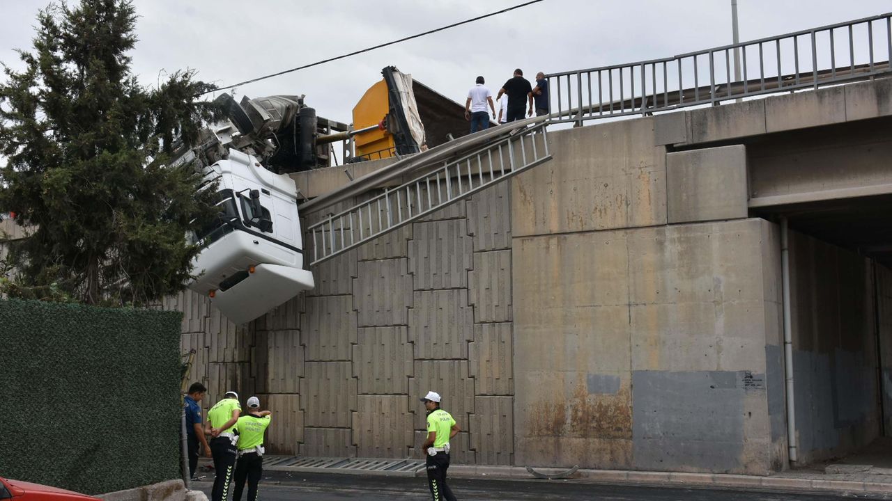 Kaza, 29 Eylül’de saat 10.00 sıralarında Ankara Caddesi 4 Sanayi Üst Viyadüğü'nde meydana geldi. Bornova'dan Alsancak Limanı yönüne giden İrfan Öngen'in (48) kullandığı 06 FGT 332 plakalı taş yüklü TIR, yağmur nedeniyle kayganlaşan yolda şoförünün direksiyon kontrolünü kaybetmesiyle devrildi. TIR'ın kupası viyadüğe asılı kalırken, şoför Öngen yaralandı. İrfan Öngen, itfaiye ekipleri tarafından kurtarıldı. Ambulansla hastaneye kaldırılan İrfan Öngen, tedavisi sonrası taburcu edildi. Bu arada kazanın bir iş yerinin güvenlik kamerasına yansıdığı ortaya çıktı. Görüntülerde; TIR şoförünün kontrolünü yitirmesi ve aracın kupasının viyadükte asılı kalması yer alıyor. (DHA)