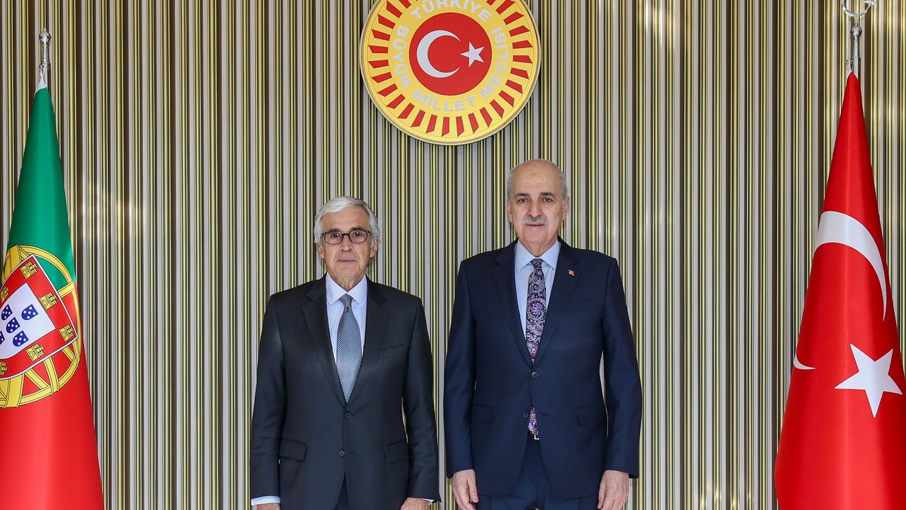 TBMM Başkanı Numan Kurtulmuş, Portekiz Cumhuriyet Meclisi Başkanı Jose Pedro Aguiar-Branco ile Meclis'te bir araya geldi.