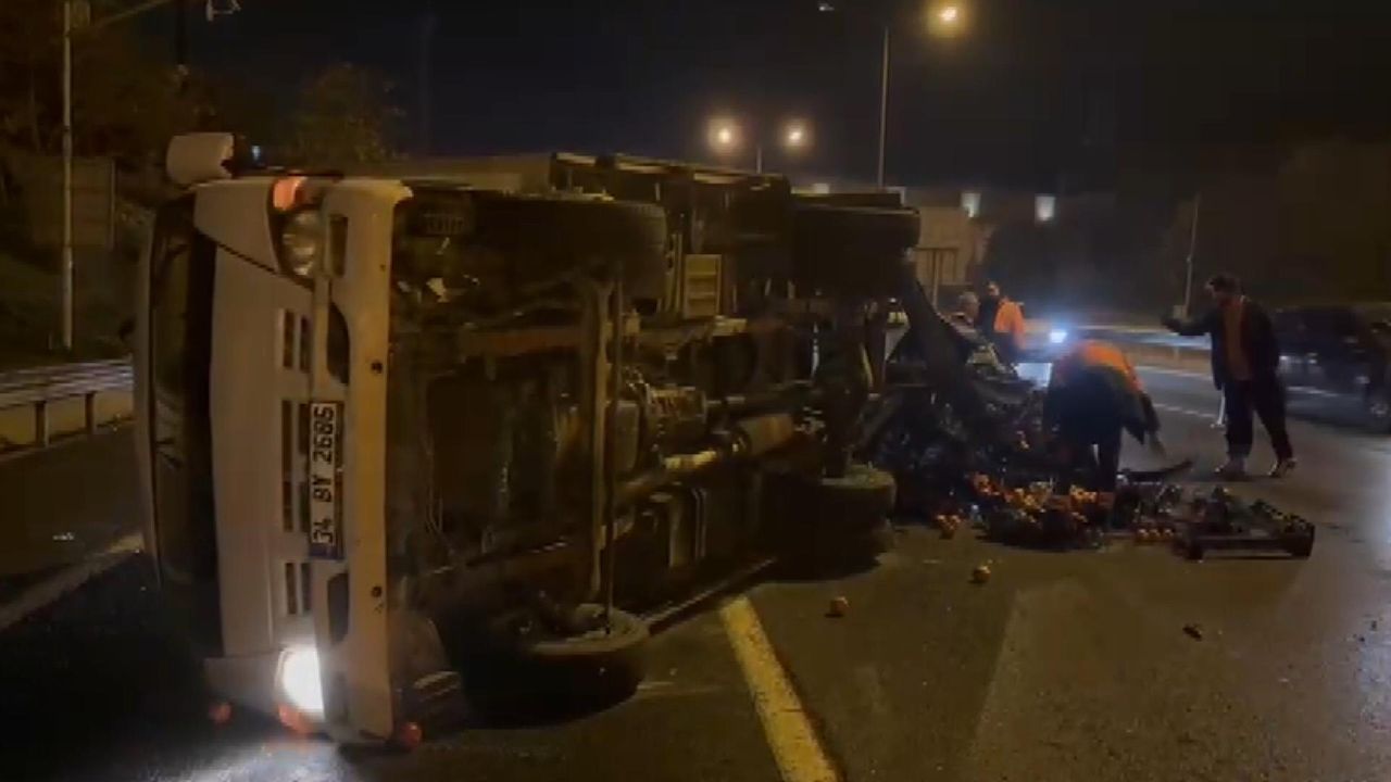 Kaza, TEM Otoyolu Ümraniye mevkisinde saat 03.30 sıralarında meydana geldi. İddiaya göre, Ankara istikametinde ilerleyen 06 EVC 454 plakalı otomobil, sürücüsünün direksiyon hakimiyetini kaybetmesi üzerine aynı yönde giden Ömer Yeşilfidan'ın kullandığı 34 BY 2686 plakalı meyve yüklü kamyonetle çarpıştı. Çarpmanın etkisiyle kamyonet devrilirken, meyveler de yola döküldü. Kaza sonrası her iki sürücü de hafif şekilde yaralandı. Yoldan geçenler bir yandan yardıma koşarken, diğer yandan da durumu polis ve sağlık ekiplerine haber verdi. Olay yerine gelen sağlık ekipleri, yaralılara ilk müdahaleyi yaparak hastaneye kaldırdı. Kaza sonrası devrilen kamyonet ve otomobil çekici ile olay yeniden kaldırıldı. Belediye ekipleri ise dökülen meyveleri toplayarak yolu temizledi. Polis ekipleri kazayla ilgili inceleme başlattı. (DHA)