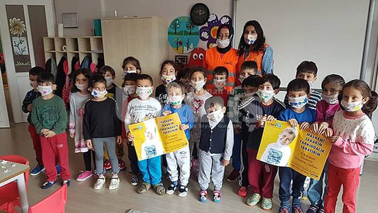 Etkinlikte, çocuklar ve aileleriyle sohbet eden gençler, çocuklara çeşitli hediyeler verdi.