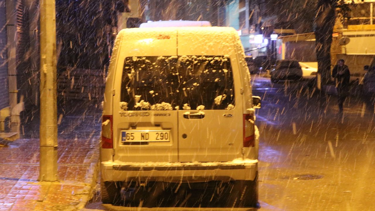 Van merkeze mevsimin ilk karı düştü. Vatandaşlar lapa lapa yağan yağışı altında gezintiye çıkarken, park halindeki araçların üzeri kısa sürede beyaz örtüyle kaplandı.