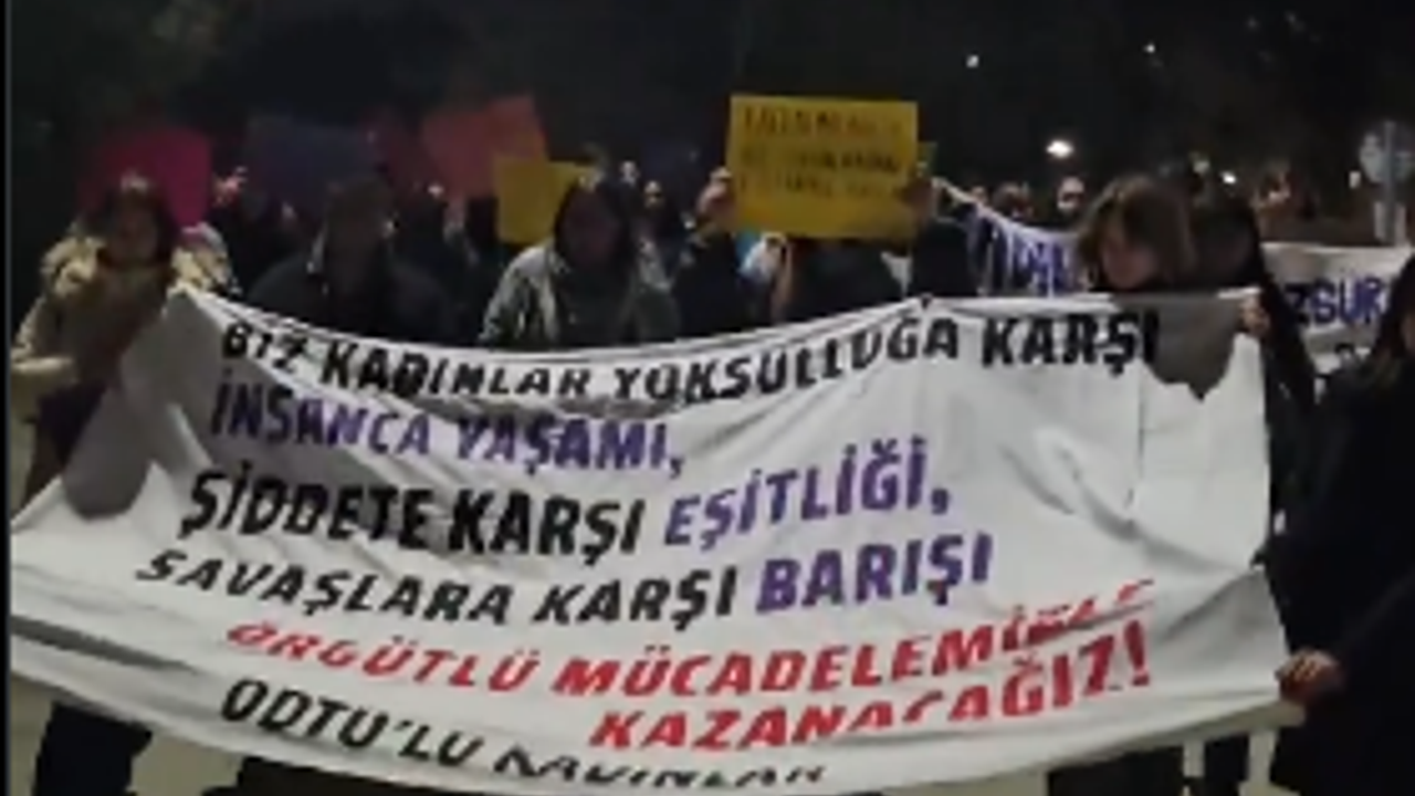 8 Mart Dünya Emekçi Kadınlar Günü nedeniyle Orta Doğu Teknik (ODTÜ) Üniversitesi öğrencileri, 8 Mart'a dikkat çekmek amacıyla, ODTÜ'de gece yürüyüşü gerçekleştirdi.